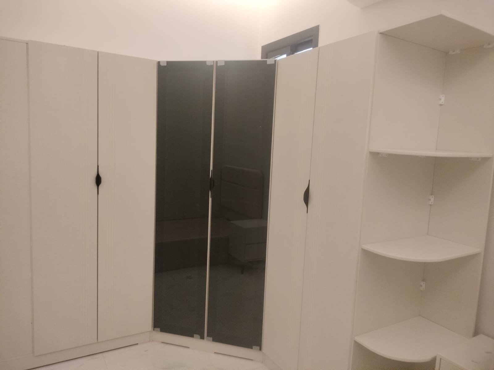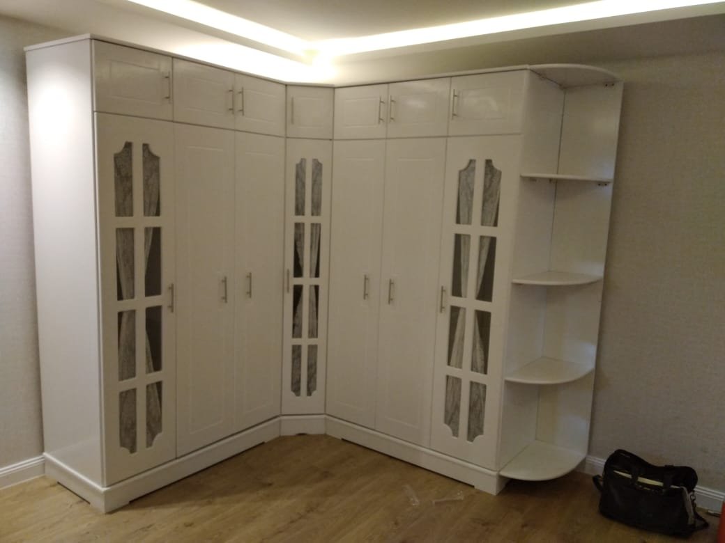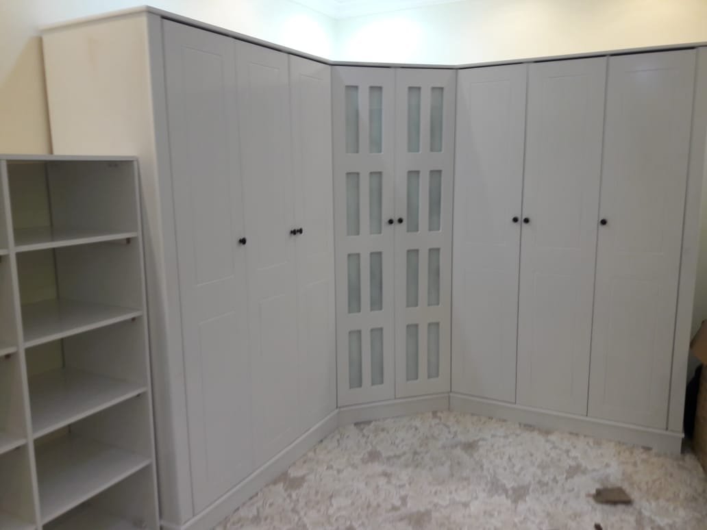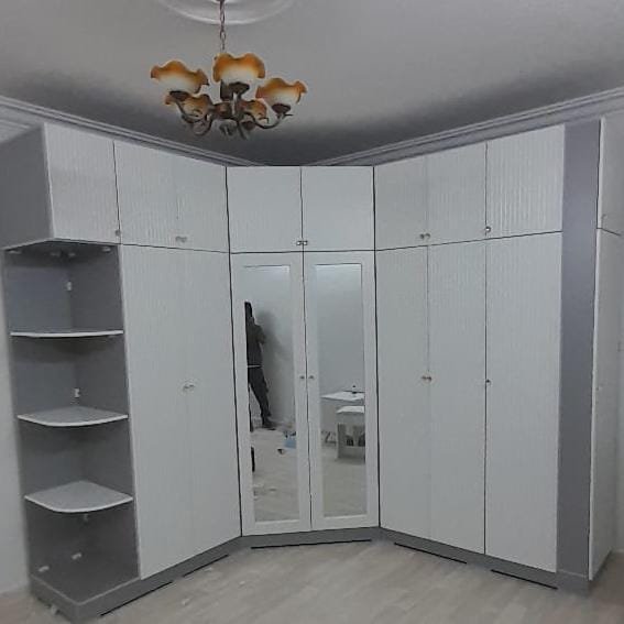 دواليب زاوية بتصميم ذكي يوفر المساحة وينظم التخزين بأناقة.