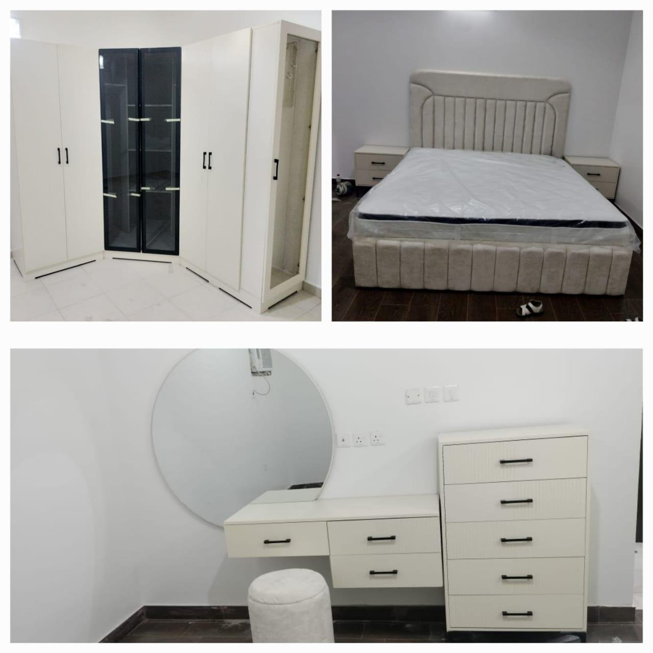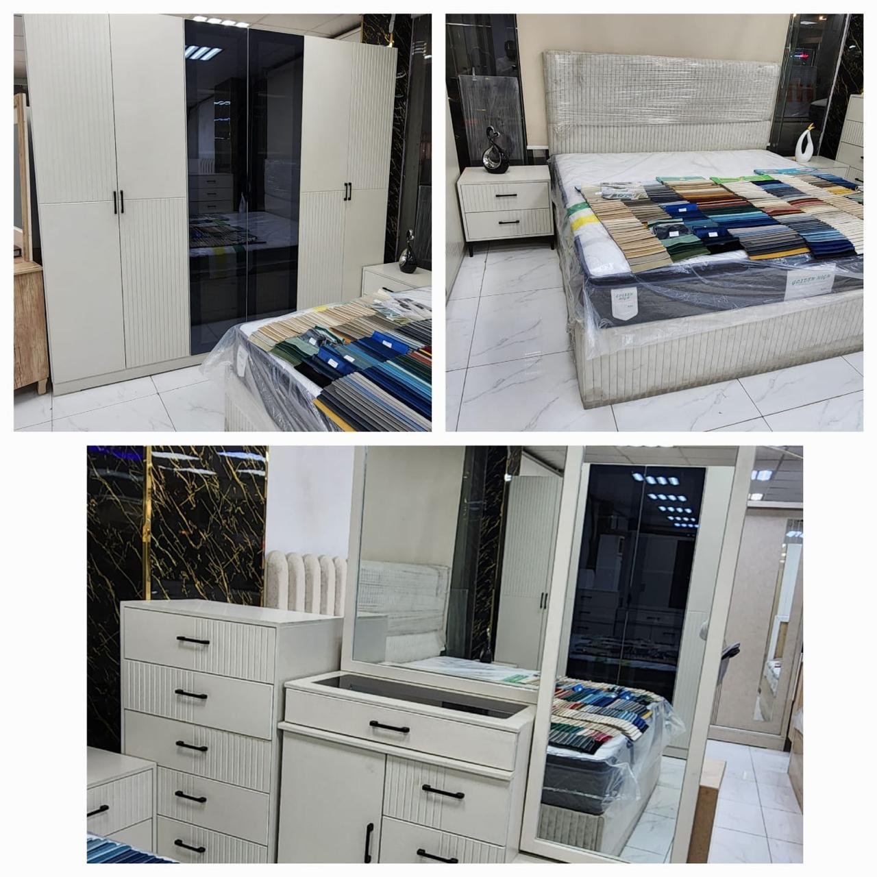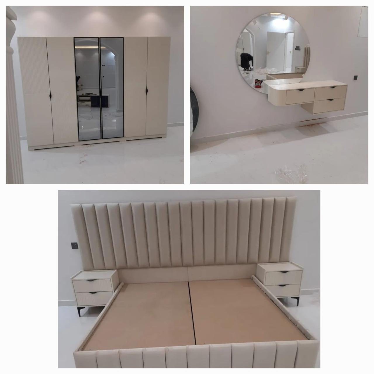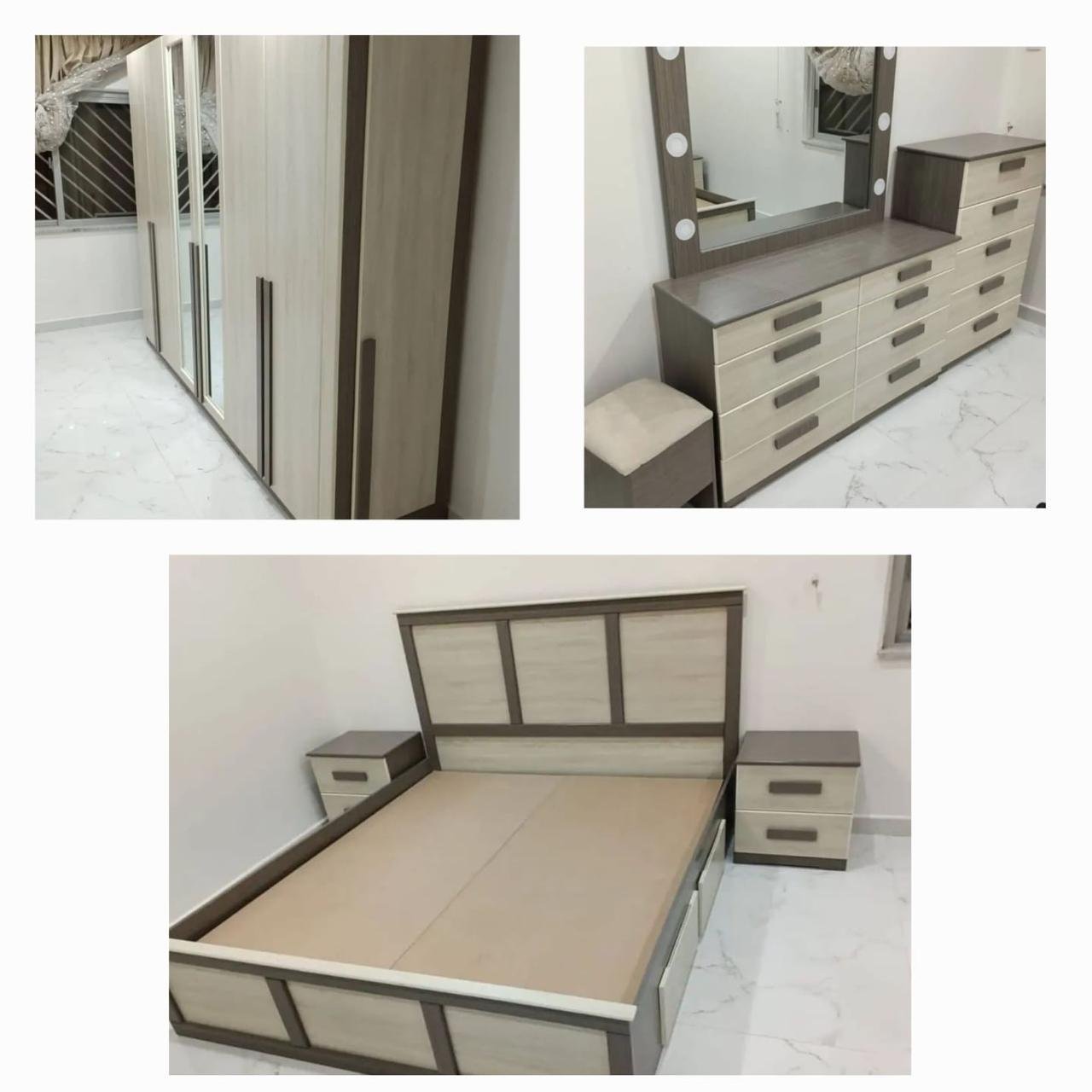 غرف نوم كاملة جاهز وتفصيل مودرن بتصميم عصري فاخر، تجمع بين الذوق الرفيع والراحة المثالية. مصنوعة من خشب هندسي متين وخشب زان روماني عالي الجودة لضمان المتانة وطول العمر. التفاصيل الدقيقة والتشطيبات الأنيقة تمنحك لمسة فخامة في كل زاوية، لتجربة نوم مريحة وأناقة لا تُضاهى.