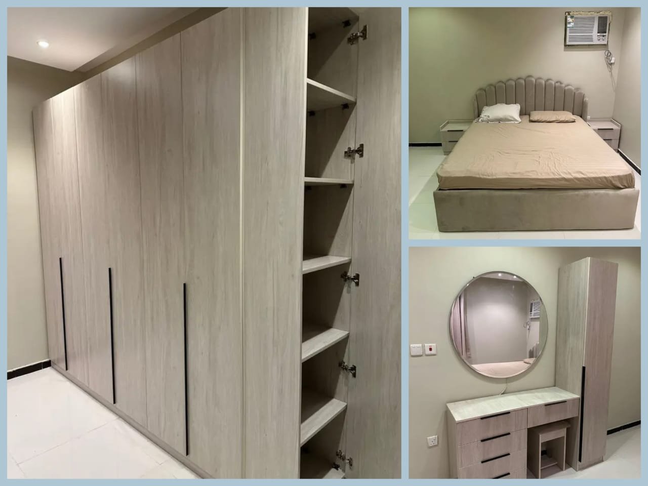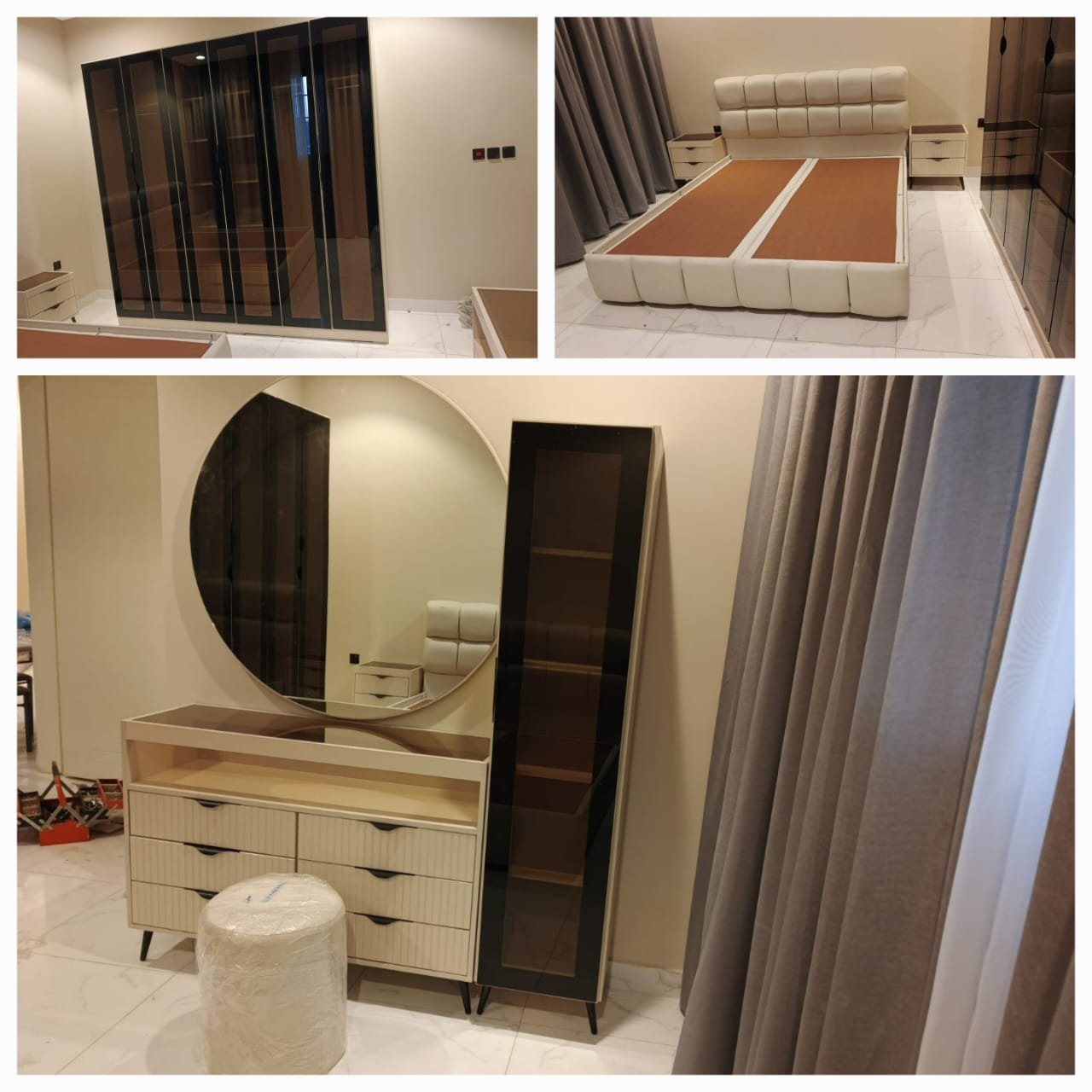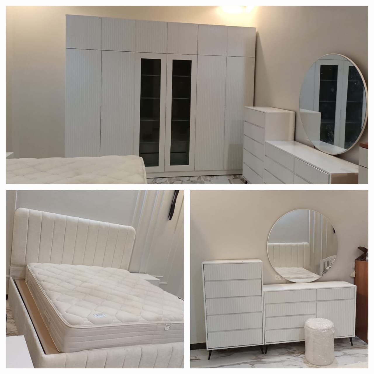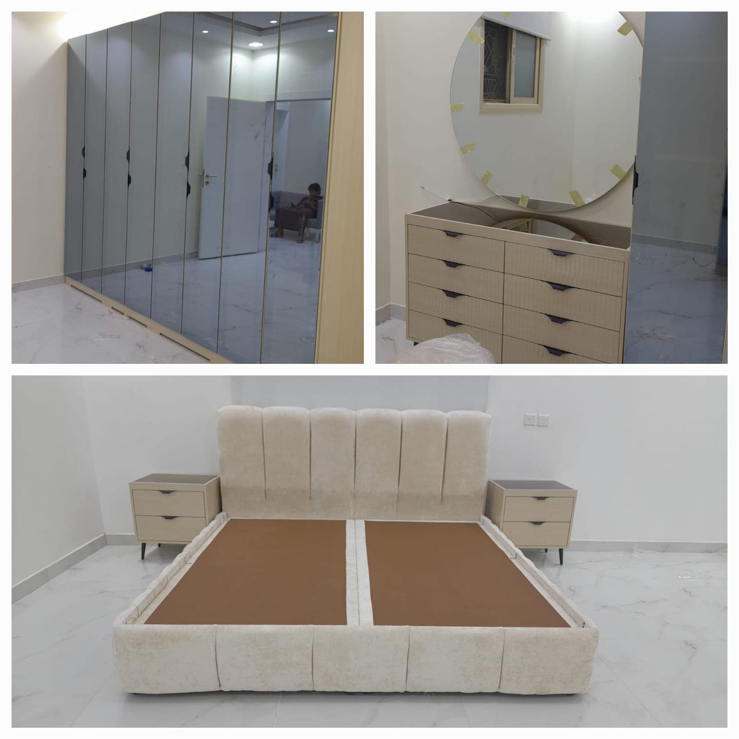 غرف نوم كاملة جاهز وتفصيل مودرن بتصميم عصري فاخر، تجمع بين الذوق الرفيع والراحة المثالية. مصنوعة من خشب هندسي متين وخشب زان روماني عالي الجودة لضمان المتانة وطول العمر. التفاصيل الدقيقة والتشطيبات الأنيقة تمنحك لمسة فخامة في كل زاوية، لتجربة نوم مريحة وأناقة لا تُضاهى.